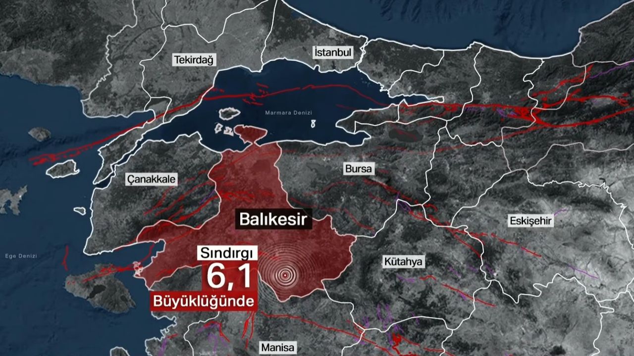 Balıkesir Sındırgı'da meydana gelen 6,1'lik deprem, Uşak, İstanbul, Kütahya, Afyonkarahisar ve Bursa gibi illerde hissedildi. AFAD tarafından yapılan bildirimde depremin büyüklüğünün 6,1 olduğu kaydedildi. Ekiplerin sahada çalışma yaptıkları ve depremin her hangi bir hasara yol açıp açmadığına dair bilgileri topladıkları öğrenildi. Depremin derinliğinin 5,9 olduğu ve bu nedenle yeryüzünde şiddetli bir şekilde hissedildiği ifade edildi. NTV'den Merih Ak, depremin Uşak, İzmir, Kütahya, Afyonkarahisar ve Manisa gibi geniş bir coğrafyada hissedildiğini ve şu ana kadar Balıkesir Sındırgı'dan bir haber alamadıklarını ifade etti. Merih Ak, son dönemlerde depremlerin bölgede yoğunlaştığını aktardı.