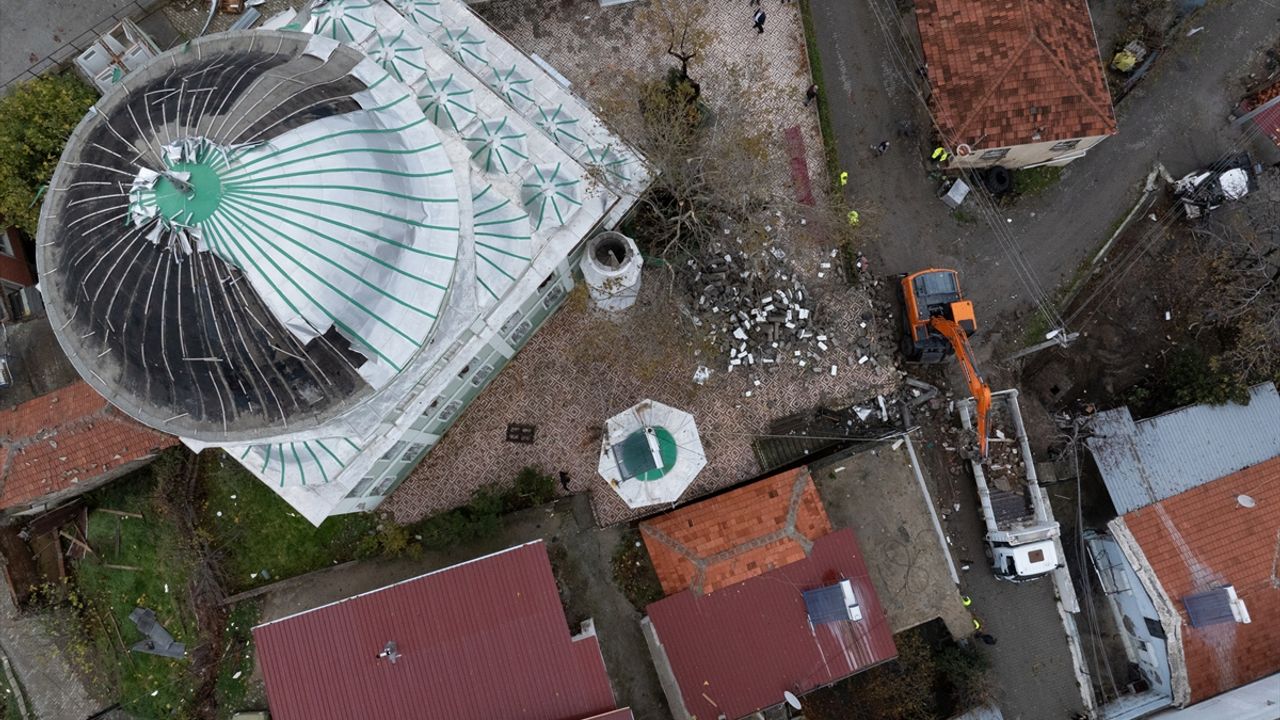 EFEMÇUKURU'NDA CAMİNİN MİNARESİ DEVRİLDİ