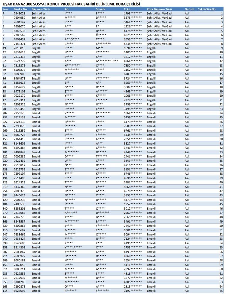 TOKİ 300 KONUT İÇİN BANAZ KURA SONUÇLARI