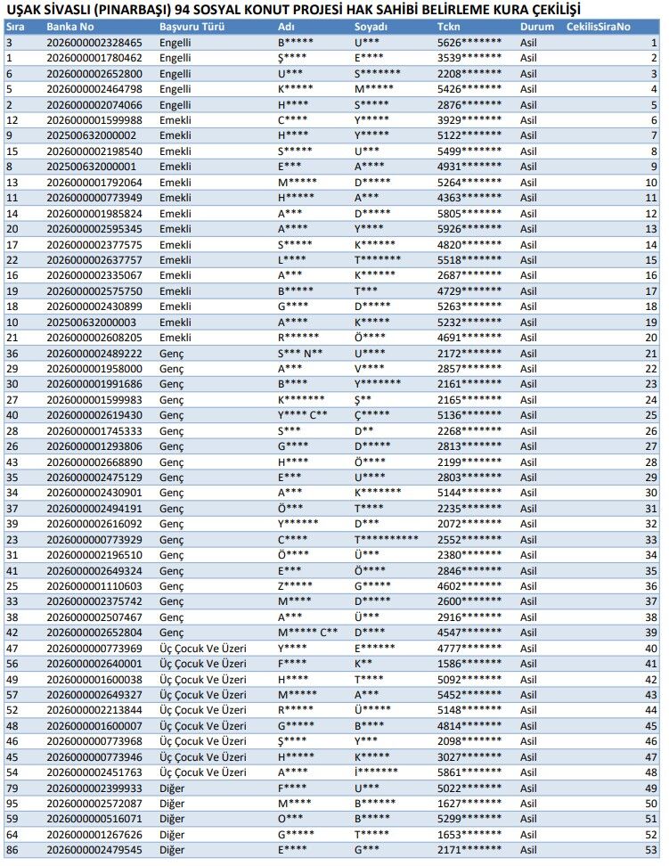 TOKİ 100 KONUT İÇİN SİVASLI PINARBAŞI BELDESİ KURA SONUÇLARI