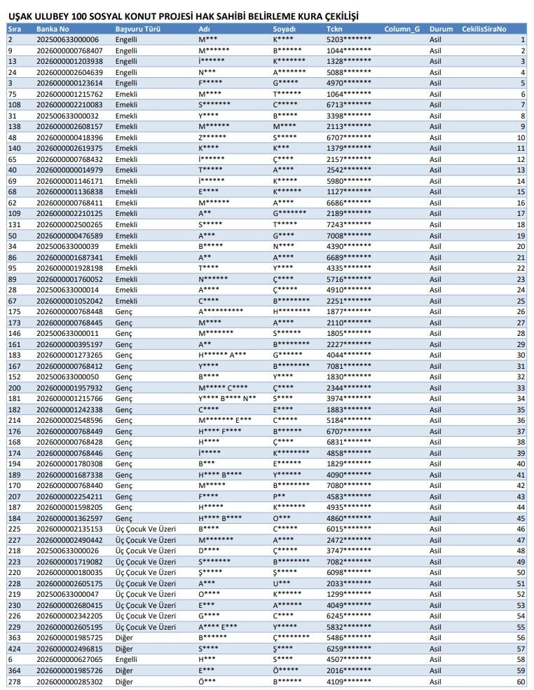TOKİ 100 KONUT İÇİN ULUBEY KURA SONUÇLARI