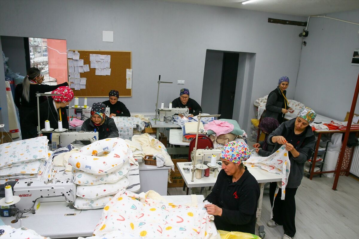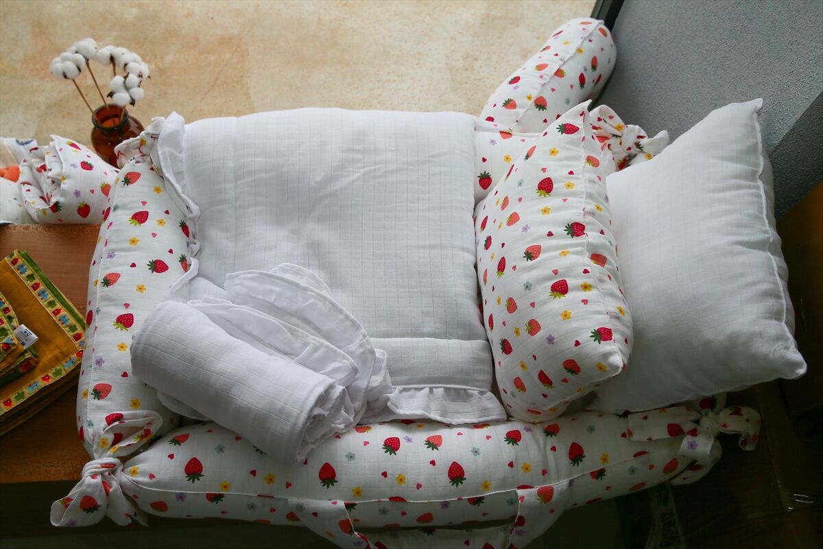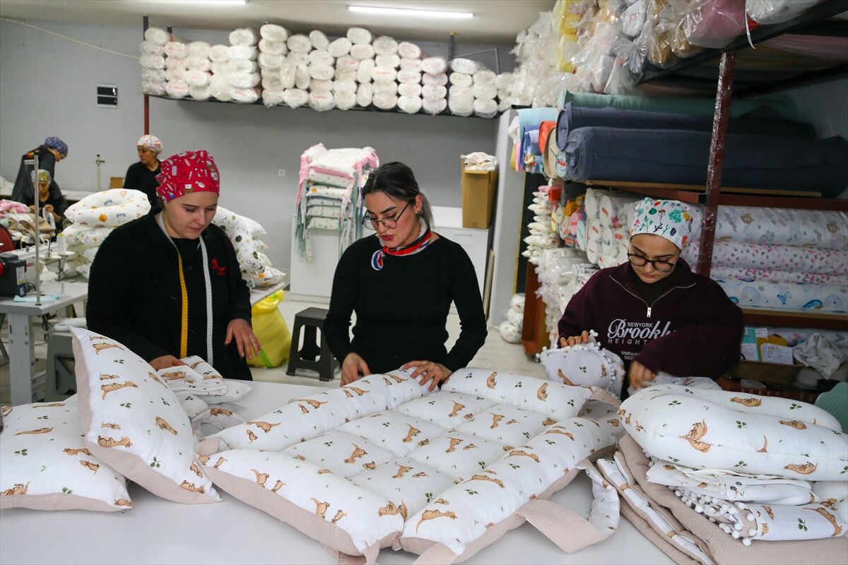 Uşak'ın Banaz ilçesinde evinin bir odasında yenidoğanlar için tekstil ürünleri üretmeye başlayan 42 yaşındaki iki çocuk annesi Çağlar Aras, kurduğu atölyede 11 kadına istihdam sağlıyor. Ev hanımı Aras, aile bütçesine katkı sağlamak amacıyla 2021 yılında evinin bir odasında müslin kumaştan puset örtüsü, battaniye ve minder dikmeye başladı. Ürettiği ürünleri ilk olarak yakın çevresine satan Aras, aldığı olumlu geri dönüşlerin ardından kendi markasını kurarak işini büyütmeye karar verdi. "Bebe Müslin" adını verdiği markasıyla sosyal medya üzerinden satış yapmaya başlayan Aras, artan talep üzerine ailesine ait küçük bir dükkanda yanına bir kişi alarak üretime devam etti. Siparişlerin artmasıyla işini büyüten Aras, ürün yelpazesini genişleterek yenidoğanlar için gerekli ürünleri set haline getirdi. Ürünlerini çeşitli satış platformları üzerinden Türkiye'nin birçok iline gönderen Aras, geçen yıl üç katlı bir binada atölye açtı. Satışlardan elde ettiği kazançla atölyesinde ihtiyaç duyduğu ekipmanları temin eden Aras, burada 11 kadına istihdam sağlıyor. Müşterilerinin taleplerine göre özel tasarımlar da hazırlayan Aras, anne yanı yatağı, emzirme simidi, kundak, nevresim takımları, yorgan ve battaniye olmak üzere 14 çeşit ürün üretiyor.