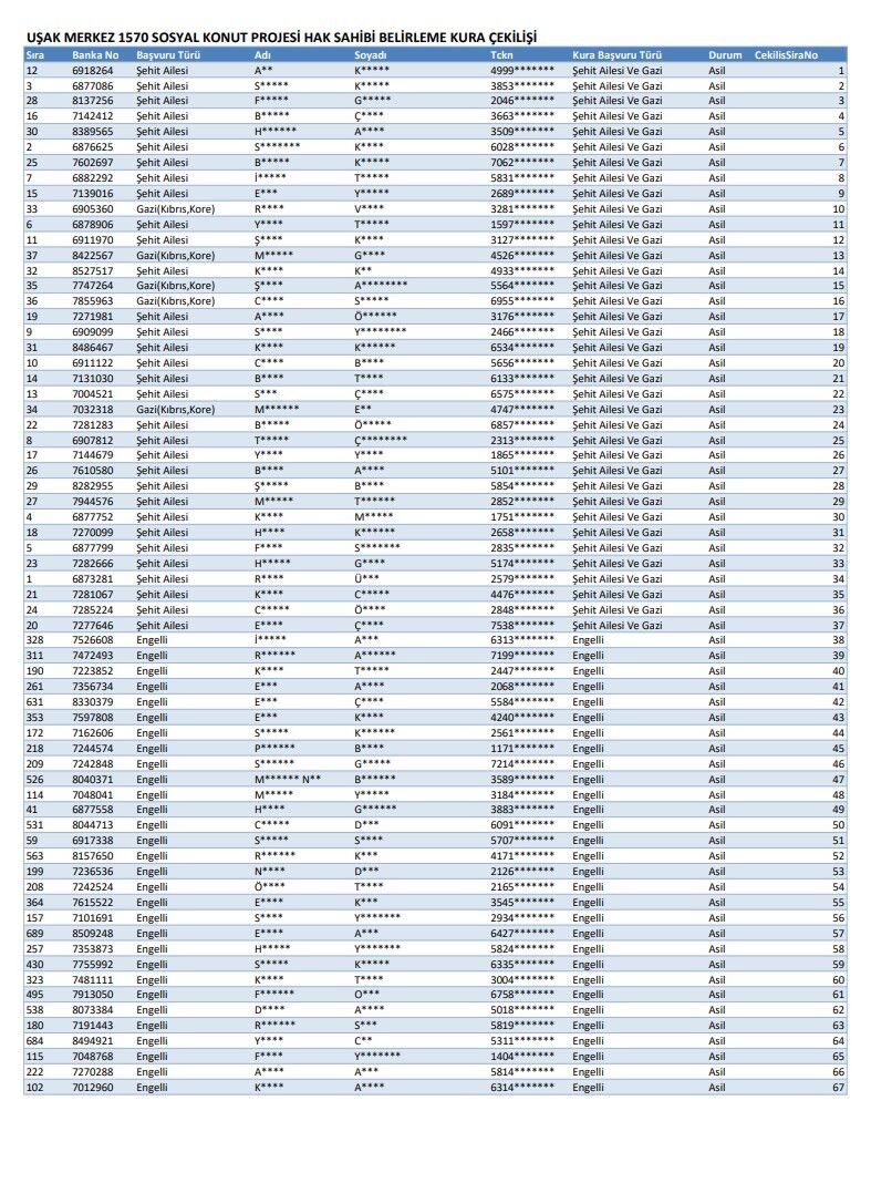 Uşak’ta kura sonucu isimleri açıklanan hak sahipleri TOKİ’nin resmi sayfasında şu başlık altında duyuruldu: