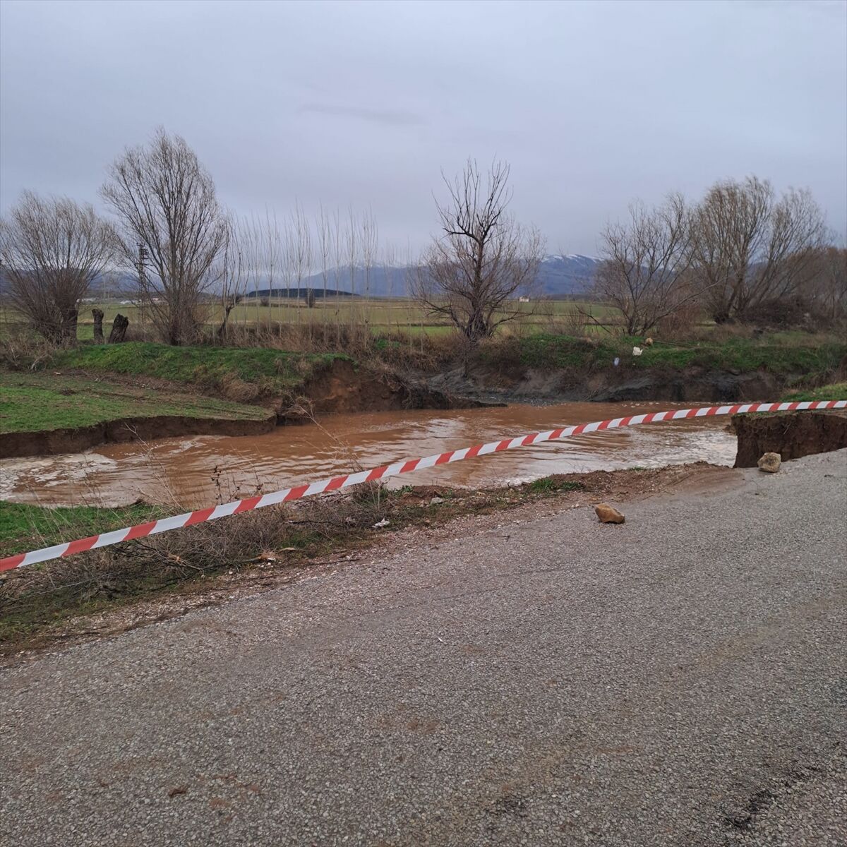 HÜDAİ KAPLICALARI İLE ÖRENKAYA ARASINDAKİ ARA YOLA YAKIN NOKTADAN GEÇEN YOL ÇÖKTÜ