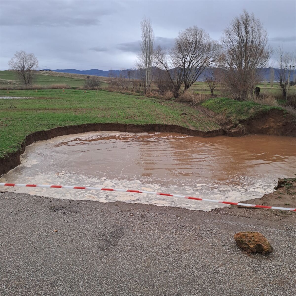 Hüdai Kaplıcaları ile Örenkaya arasındaki ara yola yakın noktadan geçen dere yatağında çökme meydana geldi ve çöken alanda su birikintisi oluştu, etrafındaki tarım arazisi zarar gördü. Bölgede güvenlik önlemi alan İlçe Jandarma Komutanlığı ekipleri de ara yolu trafiğe kapattı.