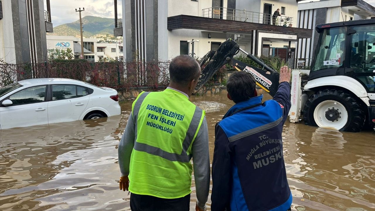 Muğla'nın Bodrum ilçesinde, kuvvetli sağanak ve dolu yağışı nedeniyle bir evin istinat duvarı çöktü, bazı cadde ve sokaklar göle dönerken, ilçede gece saatlerinde kuvvetli sağanakla birlikte dolu yağışı etkili oldu.