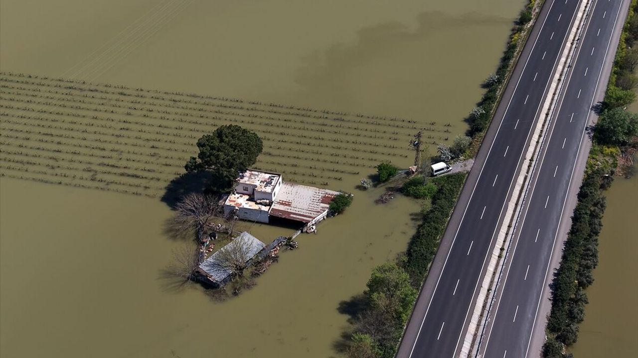 Su basan bağ evi ve hayvan damları dronla görüntülendi. Yeni Harmandalı Mahallesi'nde yaşayan Cihan Can, son günlerde etkili olan yağışlar nedeniyle birçok yeri su bastığını söyledi. Sular nedeniyle bağ evine ve hayvanlarına ulaşamadığını ifade eden Can, yetkililerden yardım istedi.