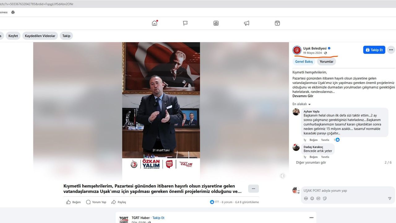 Uşak Belediye Başkanlığı görevinden uzaklaştırılan ve kendisine ait gece kulübünde çalışan personeli belediye bünyesine dahil ettiğini savcılık ifadesinde dile getiren Özkan Yalım’ın, 19 Mayıs 2024 Pazar günü Uşak Belediyesi’nin sosyal medya hesapları aracılığıyla yayımladığı video yeniden gündeme geldi. Ege'de Yenigün İHS'nin tekrar gündeme getirdiği söz konusu videoda vatandaşlara, ilk seçildiği dönemde kendisine gösterilen ilgi ve destek için teşekkür eden Özkan Yalım, ziyaretlerin artık sona ermesi gerektiğini ve çalışma zamanı oluşturabilmek adına bu kararı aldığını ifade etti. İş başvurularının da artık son bulmasını talep eden Özkan Yalım, belediyede yeni personel istihdam edecek bir imkanlarının bulunmadığını aynı videoda dile getirmişti.