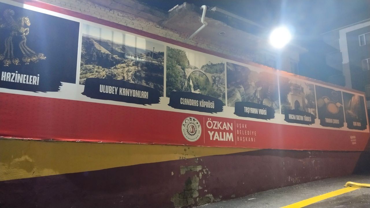 Uşak Belediye Başkanlığı görevinden uzaklaştırılan Özkan Yalım’ın kent merkezindeki fotoğraf ve sloganları, şehrin birçok noktasında vatandaşların karşısına çıkmaya devam ediyor. Uşak’a dışarıdan gelen yolcuların kullandığı Uşak Şehirler Arası Otobüs Terminali’nde yer alan “Özkan Yalım” ve “Bizim Sevdamız Uşak” afişlerinin halen yerinde durduğu görülüyor. Uşak Belediyesi tarafından başlatılan ve kamuoyunda “Özkan Yalım temizliği” olarak adlandırılan çalışmalar ise sürüyor.