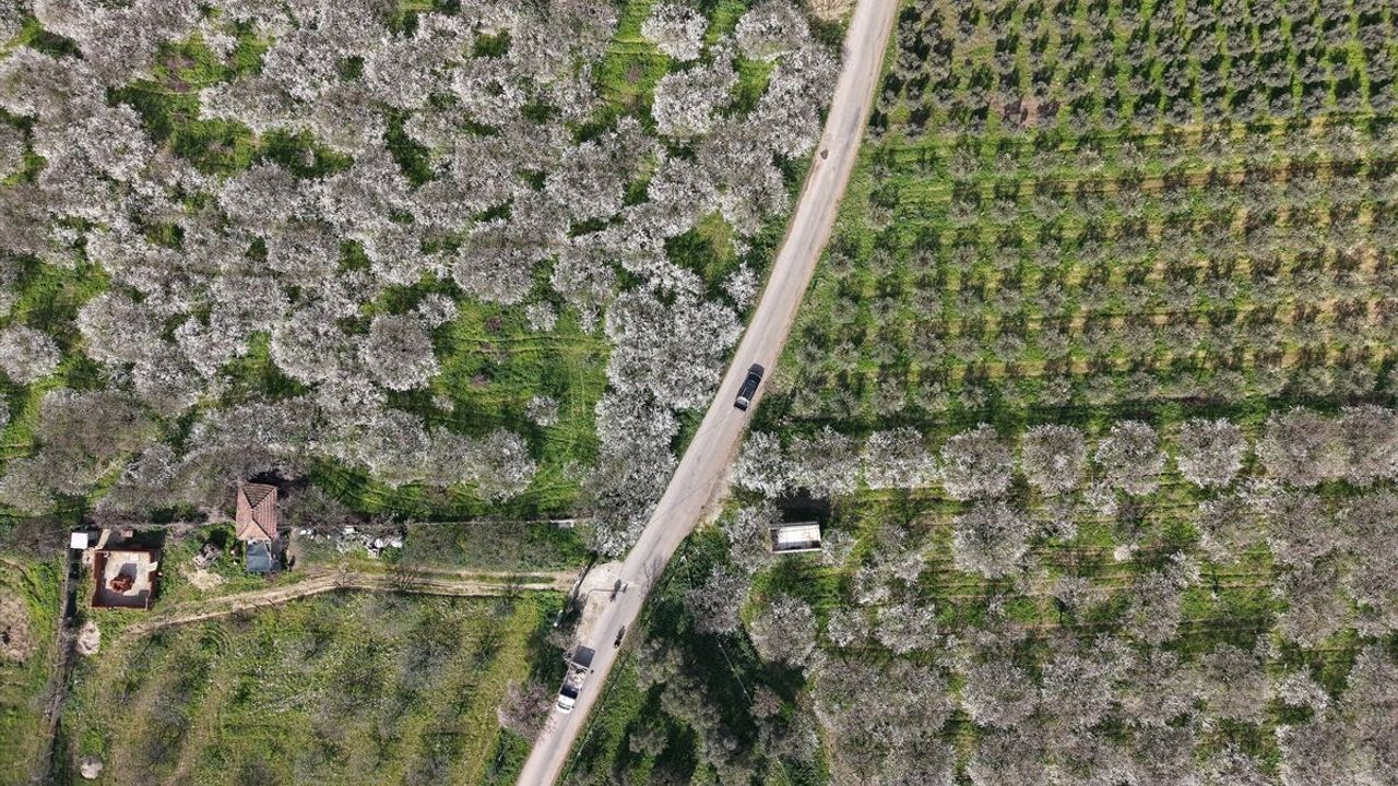 Pembe, beyaz ve eflatun çiçekler, ovada çok renkli görüntü oluştururken, ovadaki bu renklilik dronla görüntülendi. Turgutlu Ziraat Odası Başkanı Abdullah Şenol, Anadolu Ajansı muhabirine ilçede meyve sezonunun yaklaştığını söyledi. Ağaçların "yalancı bahara" aldandığını ifade eden Şenol, "Ayaz olmadığından ağaçlar, 20 gün önce çiçek açtı." dedi.