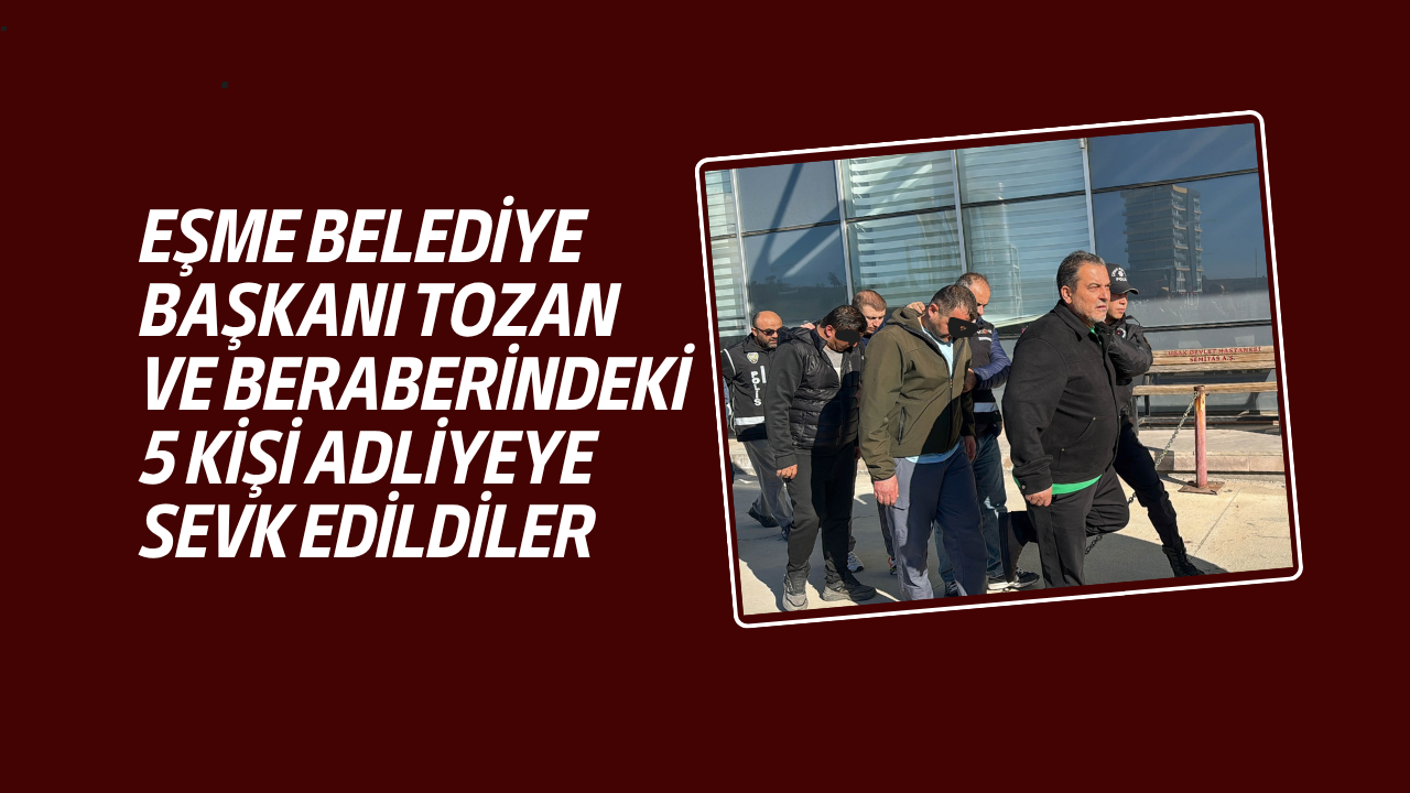 Uşak'ta, Eşme Belediyesiyle bağlantılı "irtikap" suçuna ilişkin soruşturma kapsamında gözaltına alınan Belediye Başkanı Yılmaz Tozan ile eşinin de aralarında bulunduğu 6 şüpheli adliyeye sevk edildi.