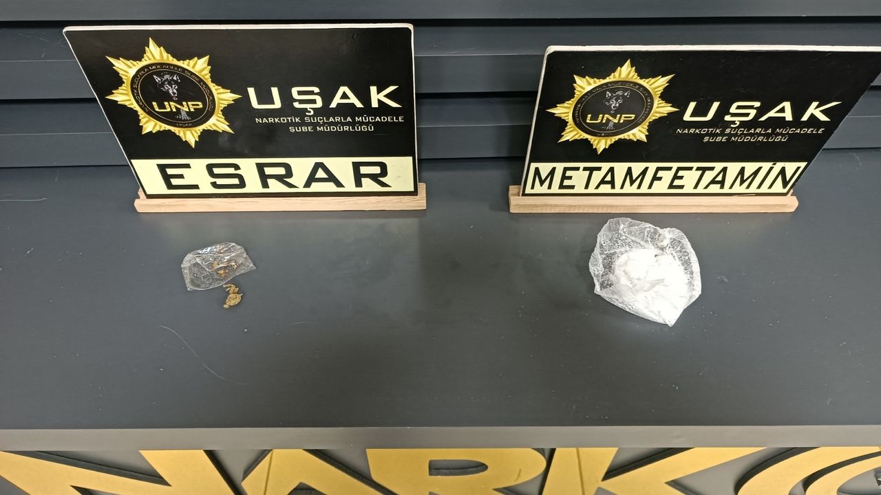 Yapılan aramada 50 gram metamfetamin, A4 kağıdına emdirilmiş 317 kullanımlık sentetik uyuşturucu ve bir miktar esrar ele geçirildi.