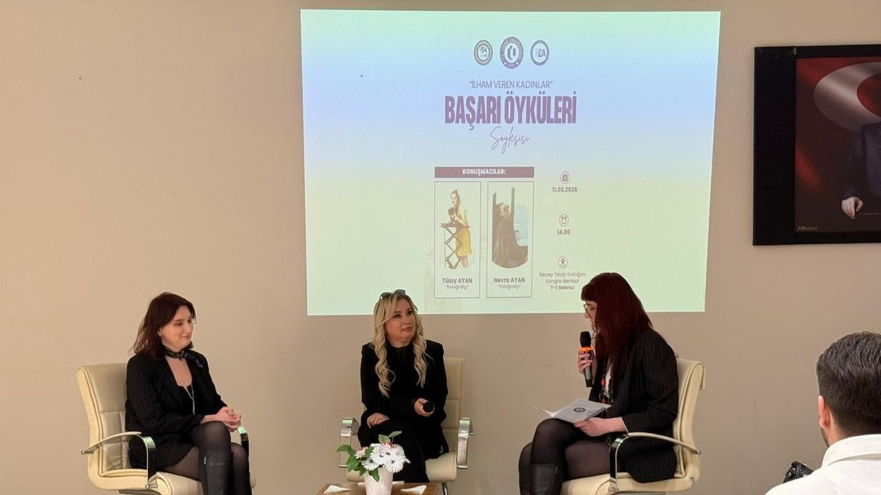 8 Mart Dünya Kadınlar Günü kapsamında, Kadın ve Aile Çalışmaları Öğrenci Topluluğu ile Dijital Dönüşüm Akademisi Öğrenci Topluluğu tarafından düzenlenen “İlham Veren Kadınlar: Başarı Öyküleri” adlı söyleşi gerçekleştirildi. Programın konukları fotoğrafçı Tülay Ayan ve kızı Nevra Ayan oldu. Söyleşide anne-kız, hem hayat hikâyelerini hem de mesleki deneyimlerini katılımcılarla paylaştı. Fotoğrafçılığa kayınvalidesinden kalan işi devralarak başladığını anlatan Tülay Ayan, yıllar içinde mesleğini geliştirerek farklı alanlarda çalışmalar yaptığını ifade etti.