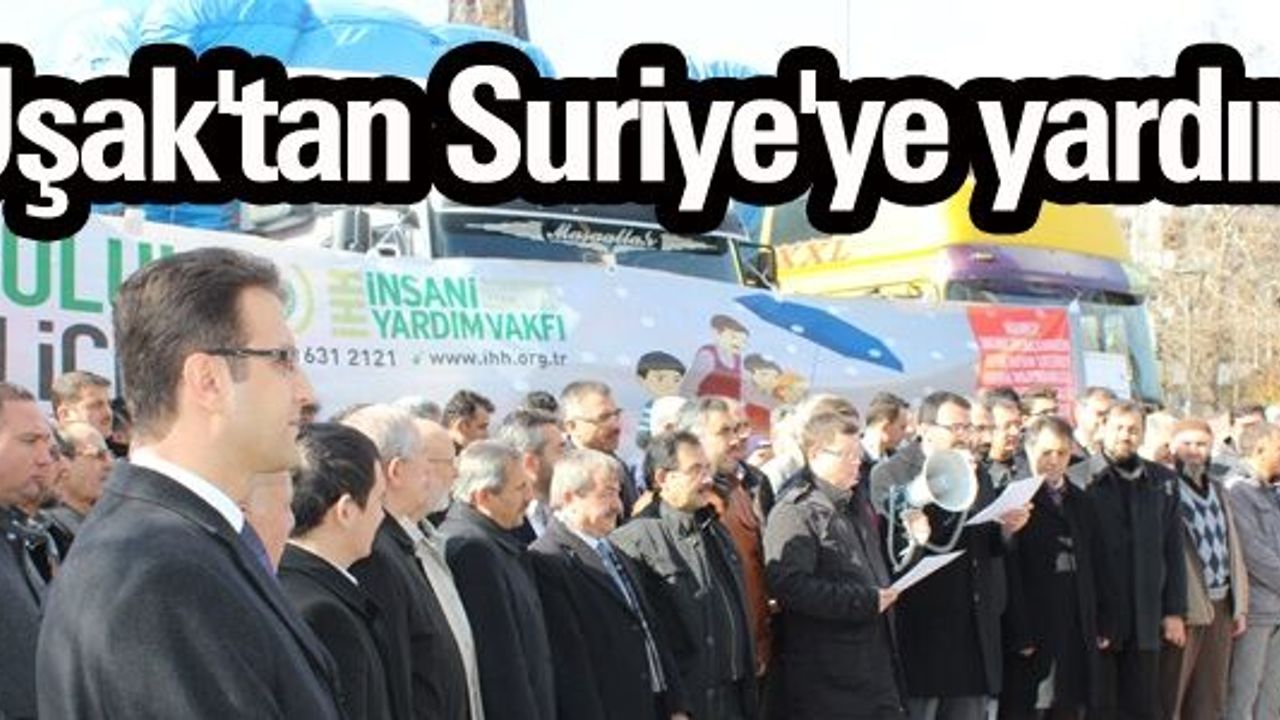 Atatürk Anıtı önünde park eden malzeme dolu 3 TIR önünde yapılan basın açıklmasını Avukat Hasan Göç okudu. Göç, Suriye’de 4 yıldır devam eden savaşta Suriye Halkının Esed’in ordusu yüzünden açlık ve sefalet içerisinde kıvrandığını belirterek, Müslüman kardeşlerinin Suriye’deki kardeşleri için harekete geçtiğini söyledi. Göç, daha önce Uşak’tan gönderilen; un ve battaniyelerin IHH Yardım vakfı tarafında Suriye’deki Müslümanlara ulaştırıldığını sözlerine ekledi.Yapılan basın açıklamasında katliama maruz kalan Suriyelilere yardım etmenin insani ve İslami bir sorumluluk olduğu belirtilirken, özgürlük mücadelesinde sonuna kadar Suriye halkının yanında yer alınacağı vurgulandı.